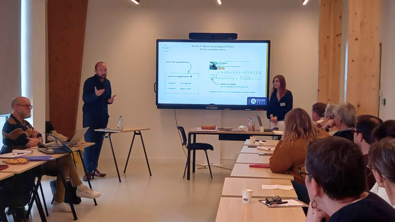 Pierre Goubeaux et Noëlline Peltier animent l’atelier « Allez plus loin dans l’optimisation de votre offre Open Pro » à la Cité du Numérique à Blois, le 14 octobre 2025.